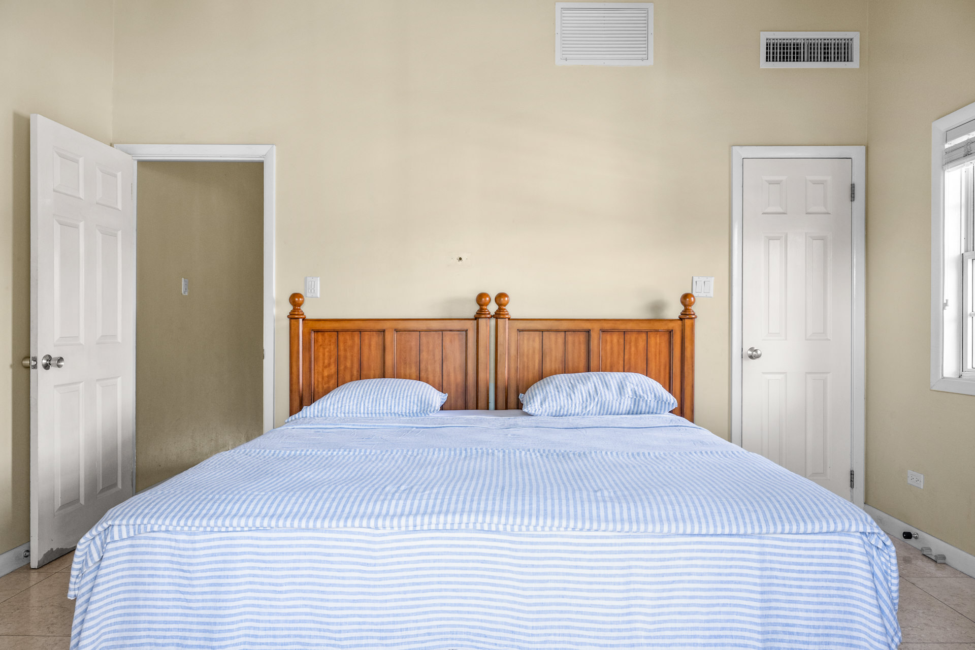 To the front, the screened dining porch overlooks lush tropical landscaping, the tranquil lagoon, an inviting swimming pool with generous sun-lounging areas, and beyond that the soft sandy beach and the Caribbean Sea.